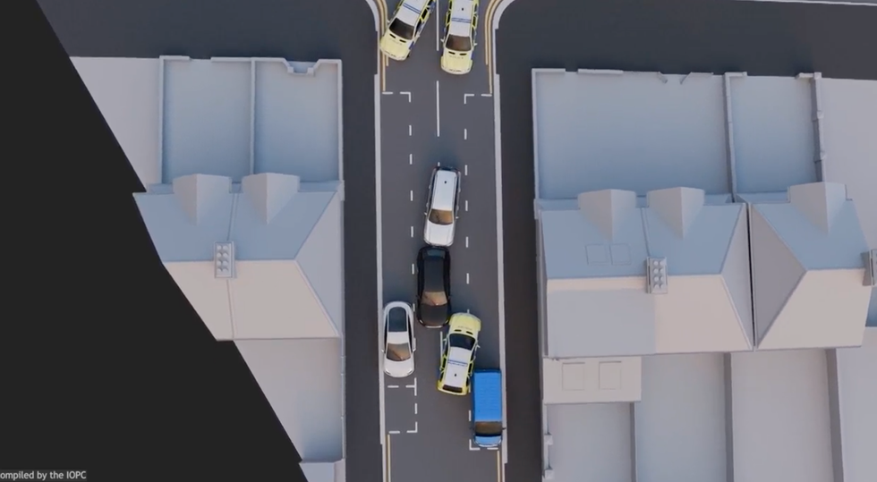 A construction of the fatal incident was shown in court with police cars blocking in Chris Kaba's Audi