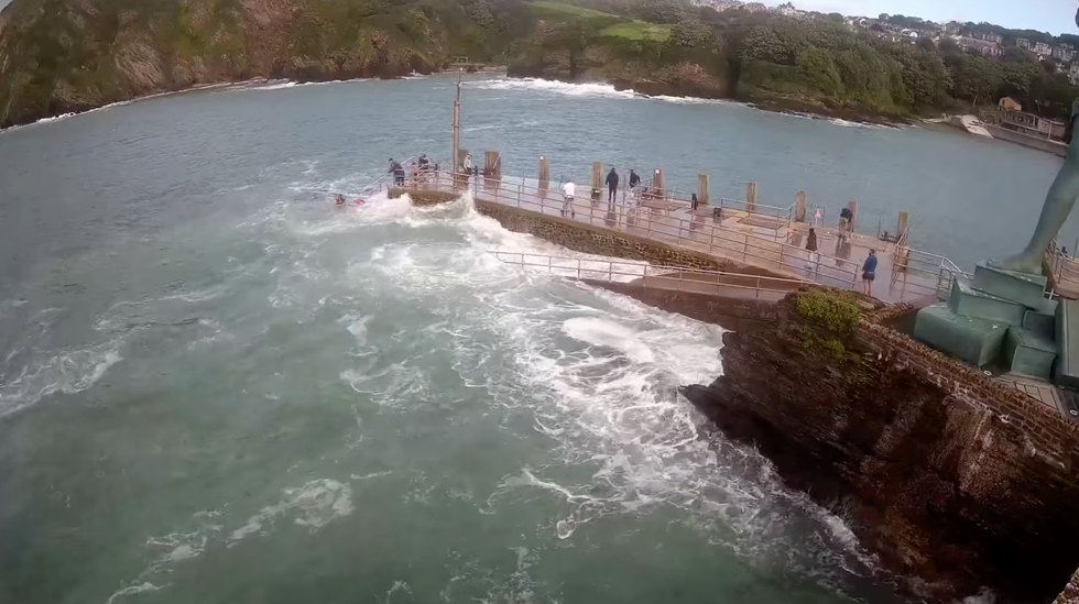 A group of four children were spotted at Ilfracombe Harbour during high tide when a wave knocked a girl off her feet and swept her between the railings and into the sea.