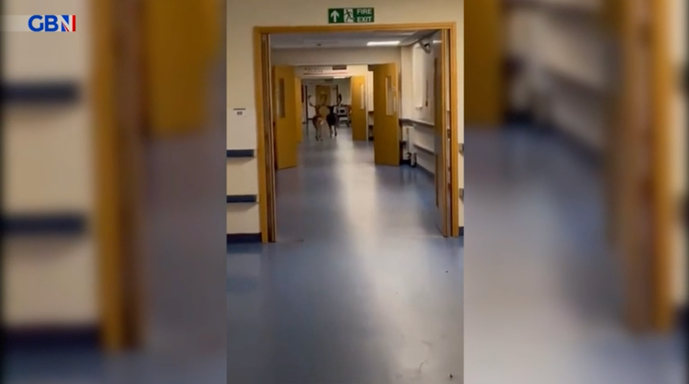In a video circulating on social media, two fallow deer can be seen trotting down the hallway of what is believed to have been the maternity ward.