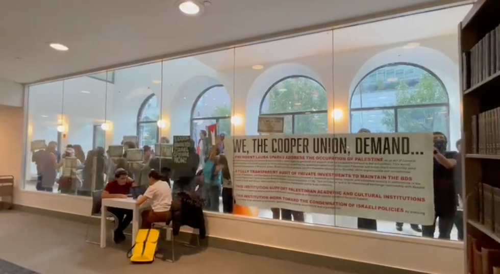 The horror scenes unfolded at Cooper Union, a liberal college near Astor Place in Manhattan where a crowd were heard chanting "Free, free Palestine" in the lobby of the building.
