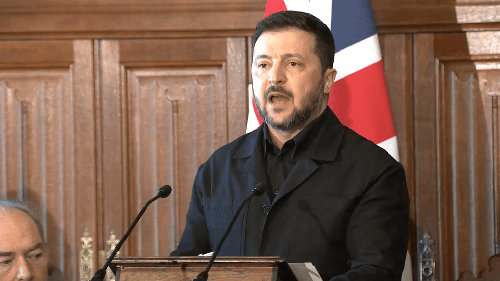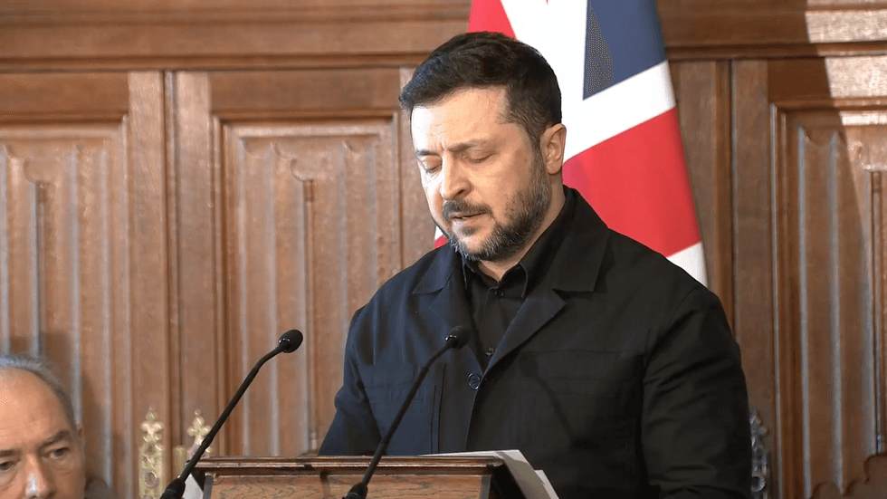Volodymyr Zelensky is currently addressing MPs after meeting with Keir Starmer.