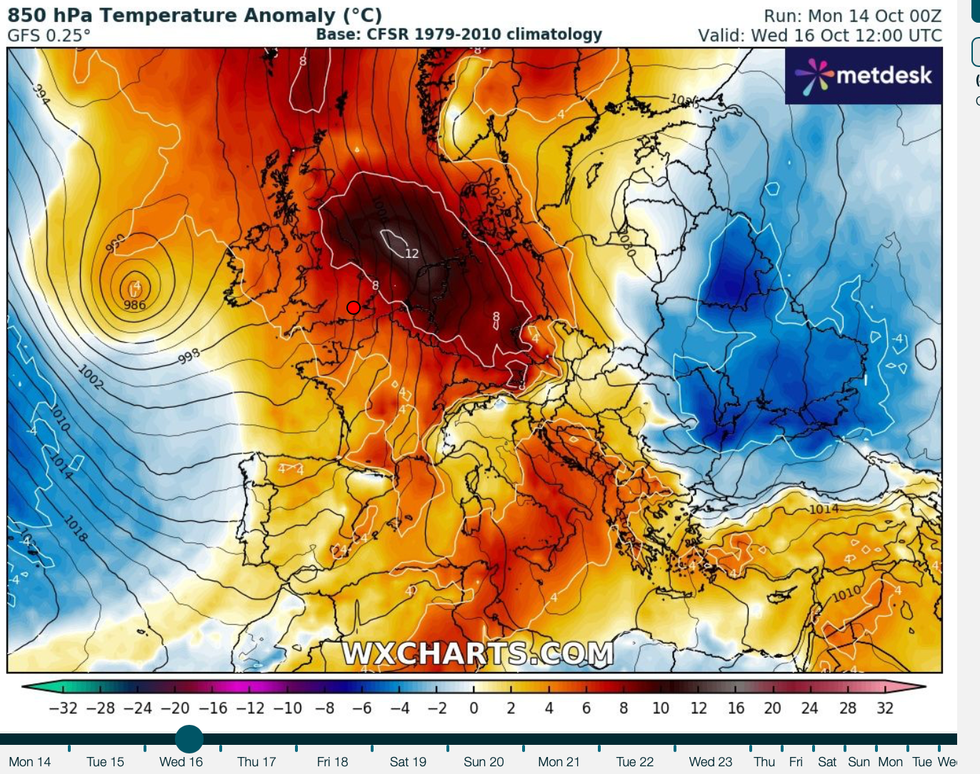 “Temperatures could well rise higher than the October average of 14C and even higher than 20C or into the low 20Cs, in the warmest spots.”
