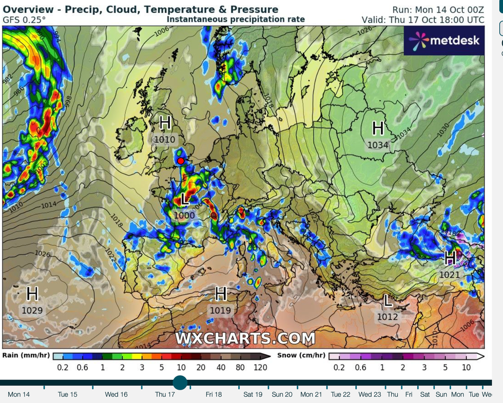 “It becomes drier and brighter on Thursday but turns wet and windy from the west on Friday, and milder than of late.”