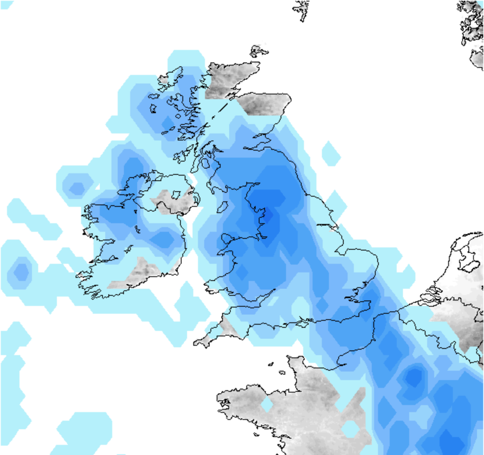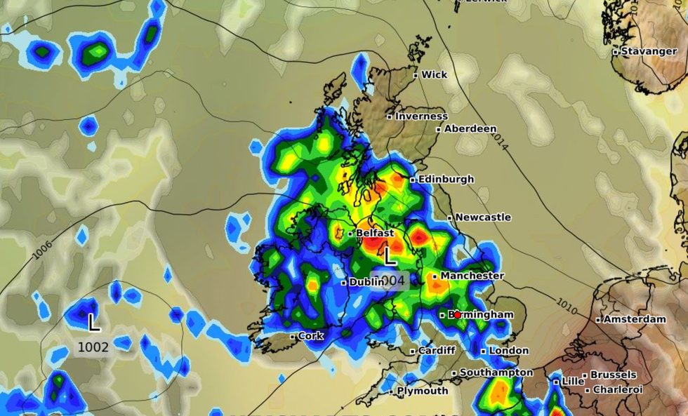 Met Office forecaster Aidan McGivern added: "A much more showery outlook for the weekend and beyond with the chance of some heavy downpours and some thunderstorms especially towards the west and southwest."