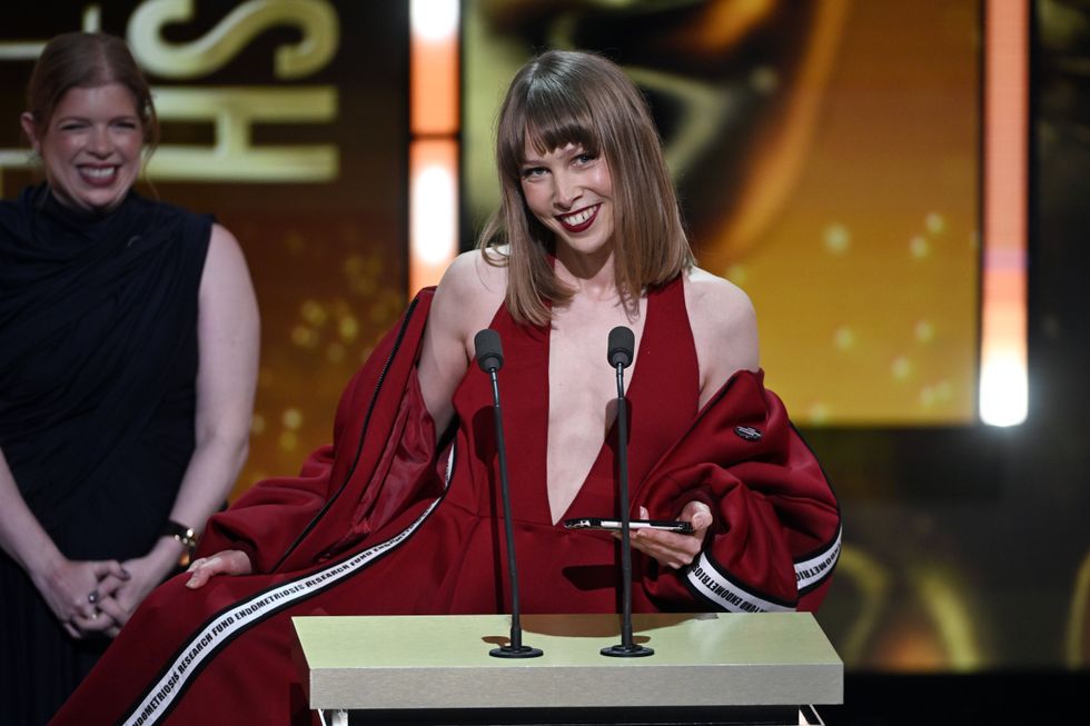 "To Bafta and everyone who voted and supported our film, this recognition means so much to this community, and from the bottom of my heart, thank you. And thank you to my brother Ralph Wileman for making my dress. Fund endometriosis research!"