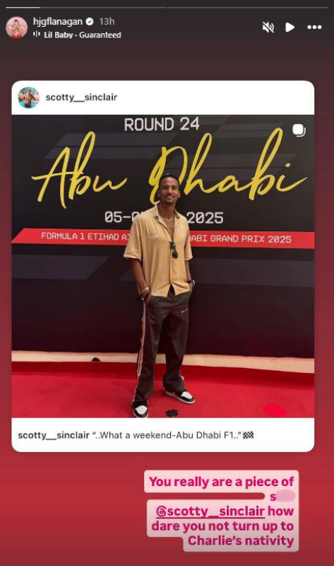Responding to Mr Sinclair's F1 post, one of Ms Flanagan's fans commented: "Lol of course you’d go to the f1 in Abu Dhabi instead of a child’s nativity play is a no brainer."