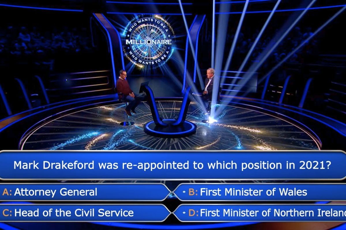 The answer was soon unveiled as First Minister of Wales, although the player had to use a Phone a Friend and a 50-50 to correctly pick it out.