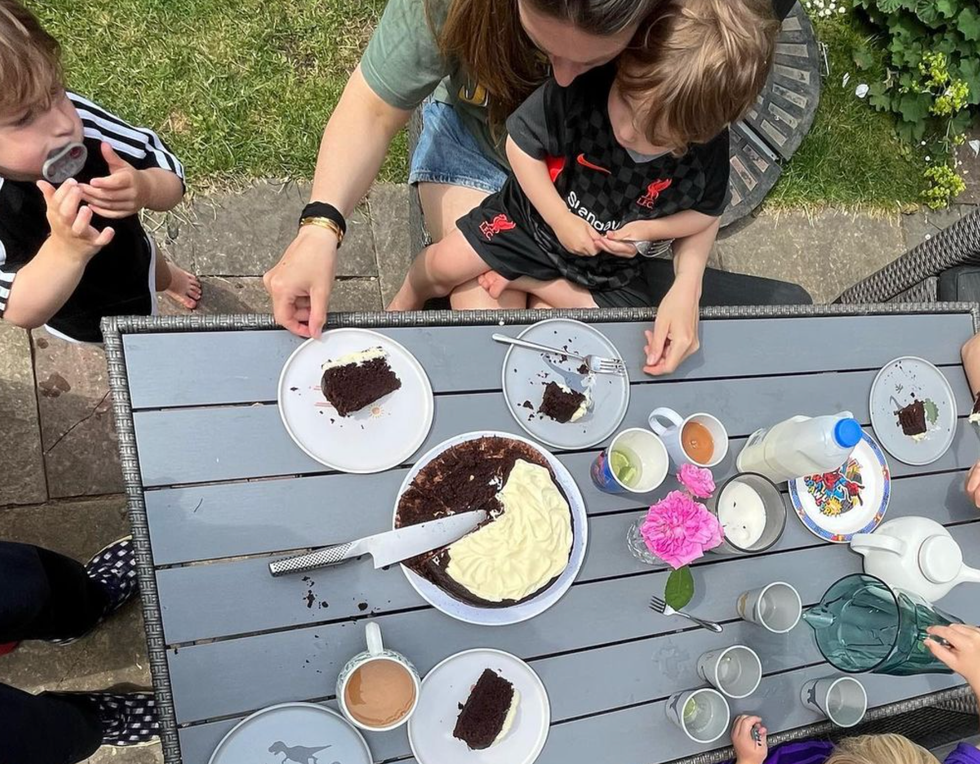 Other pictures show the dad eating his Guinness cake as the children enjoyed playing in the garden.