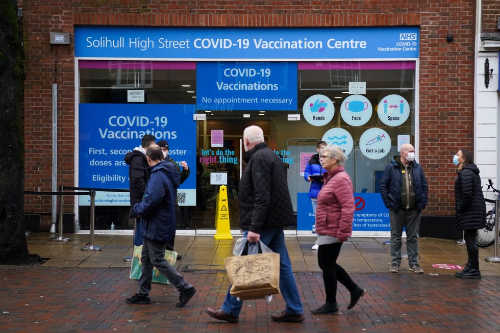 Shoppers pass a Covid-19 vaccination centre in Solihull town centre. Prime Minister Boris Johnson has said that the vaccination campaign has allowed England to maintain its current level of coronavirus controls on December 29, 2021.
