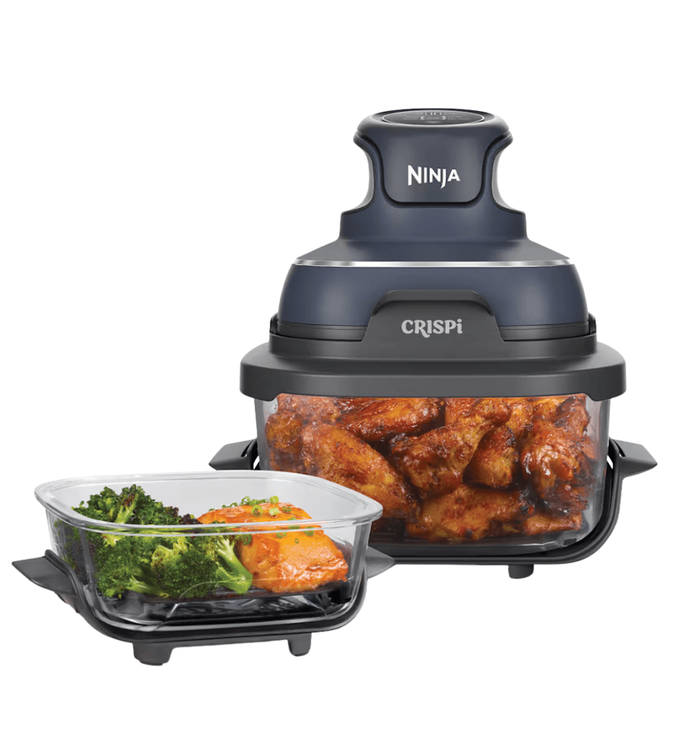 Starting off, the Ninja CRISPi is a portable solution from the US manufacturer that can be snapped to either a 1.4-litre or 3.8-litre transparent TempWare glass container — then cook, serve and store all in the same vessel. The glassware is PFAS-free, heat-resistant, and dishwasher safe for easy cleanup.