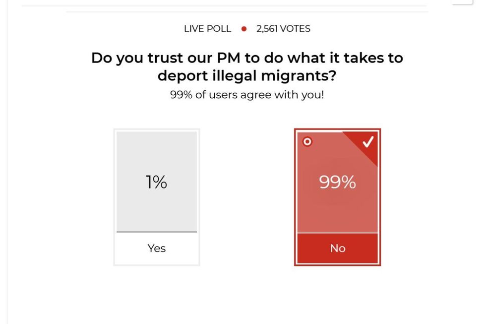 A staggering 99 per cent of GB News members do not trust Sir Keir Starmer to deport illegal migrants, a new poll has revealed.