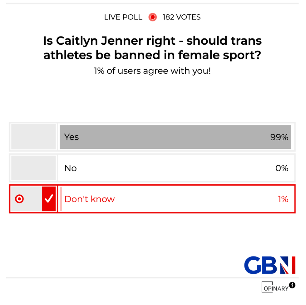 Just one per cent said they did not know, while 99 per cent agreed that trans athletes should be banned in female sport.