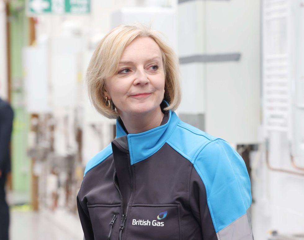 Liz Truss wearing a British Gas jacket