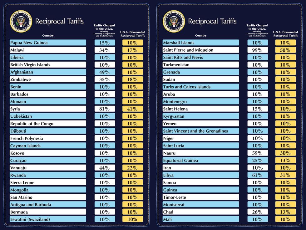 "So, the tariffs will not be a full reciprocal. I could have done that, yes, but it would have been tough for a lot of countries," Trump explained.