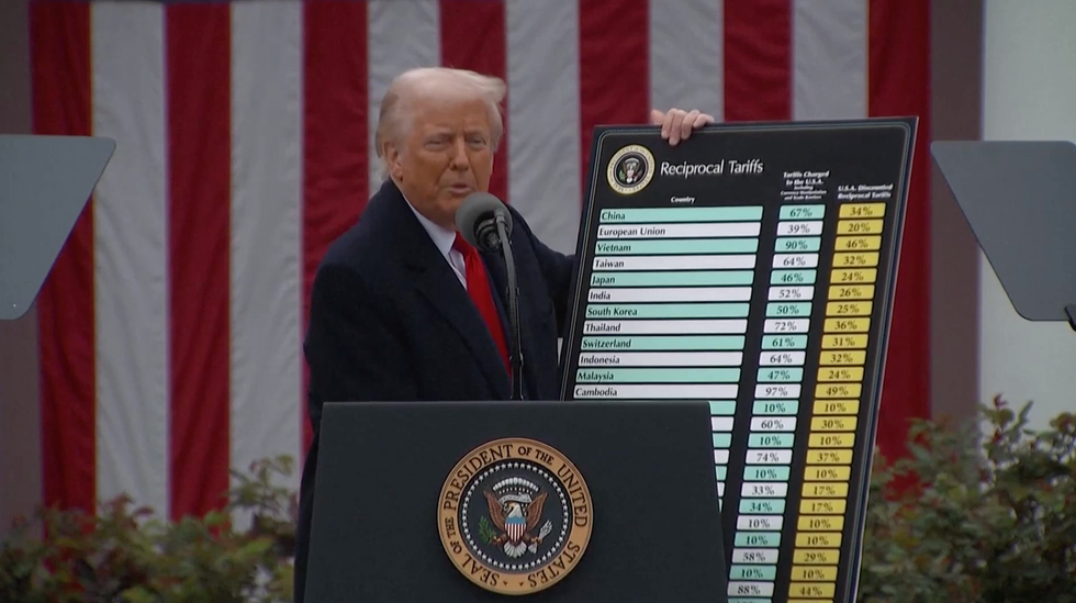 Speaking from the White House Rose Garden, Trump revealed a chart listing the new tariff rates for different countries.
