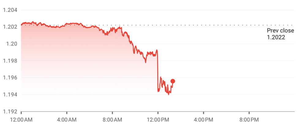 The pound dropped in value immediately after the Bank of England's change to the base rate of interest was released