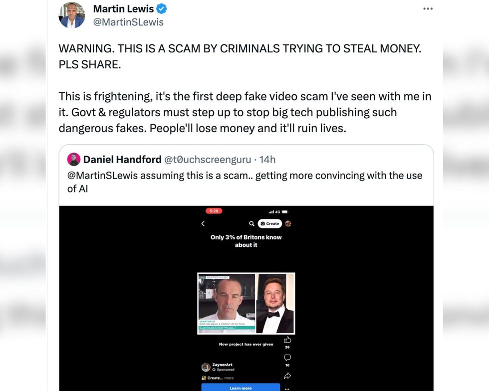 "Govt & regulators must step up to stop big tech publishing such dangerous fakes. People’ll lose money and it’ll ruin lives.”