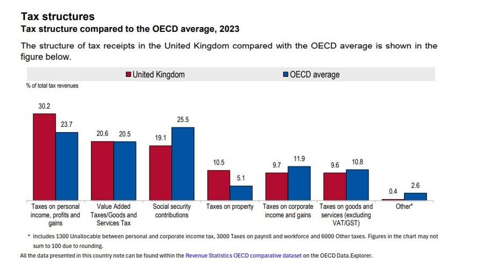 The OECD is breaking down the income tax and capital gains tax burden placed on hard-working Britons