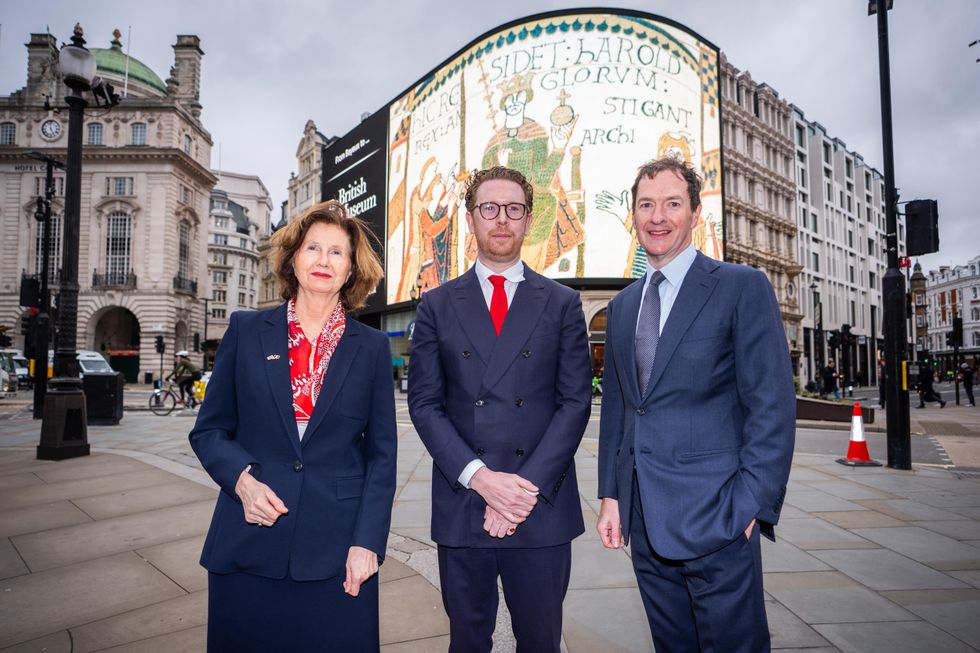 French Ambassador Helene Duchene, Director of the British Museum, Dr Nicholas Cullinan and Chair of Trustees at the British Museum, George Osborne launched the campaign