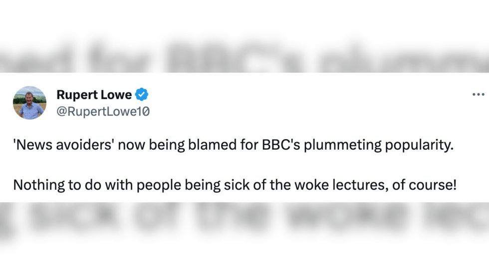 "'News avoiders' now being blamed for BBC's plummeting popularity," Lowe wrote on X, formerly known as Twitter.