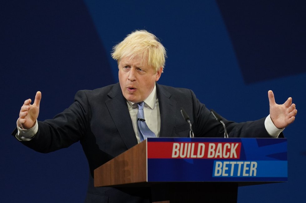Prime Minister Boris Johnson delivers his keynote speech to the Conservative Party Conference in Manchester. | Jacob King