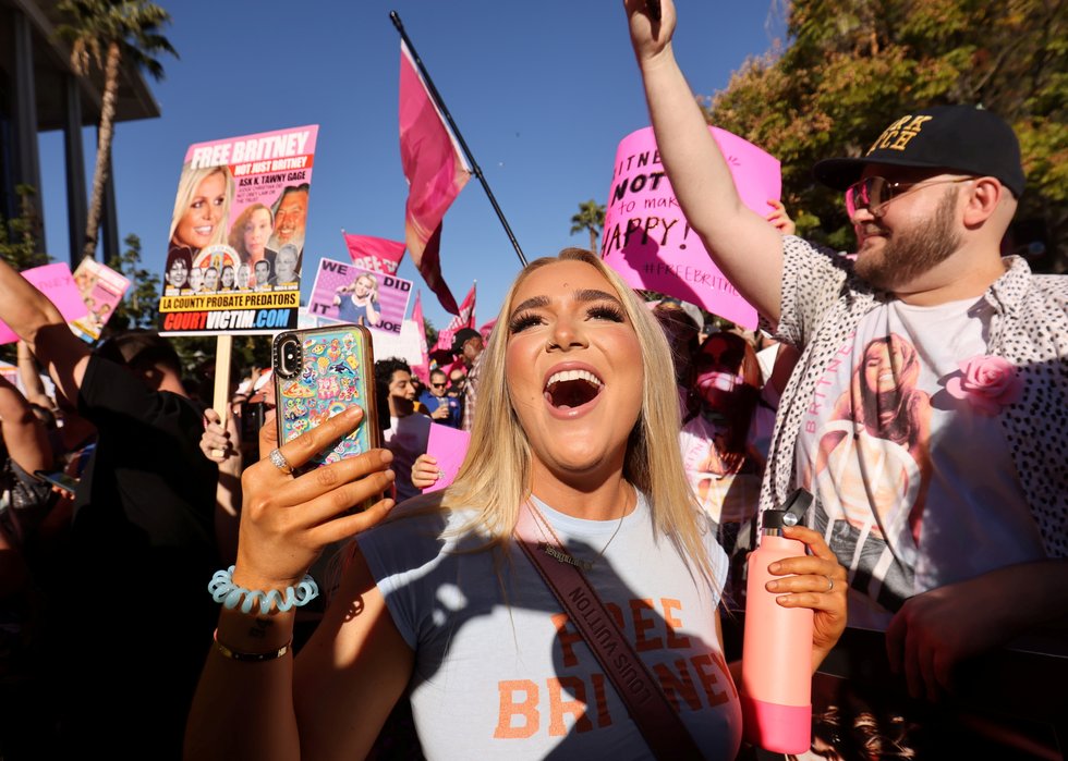 Cheers mixed with tears outside a court in Los Angeles on Friday as fans of Britney Spears celebrated the termination of the pop superstar’s conservatorship.