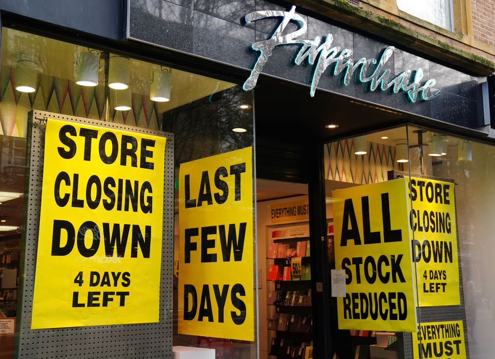 Closing down signs in the window of the Paperchase shop on Worcester high street.