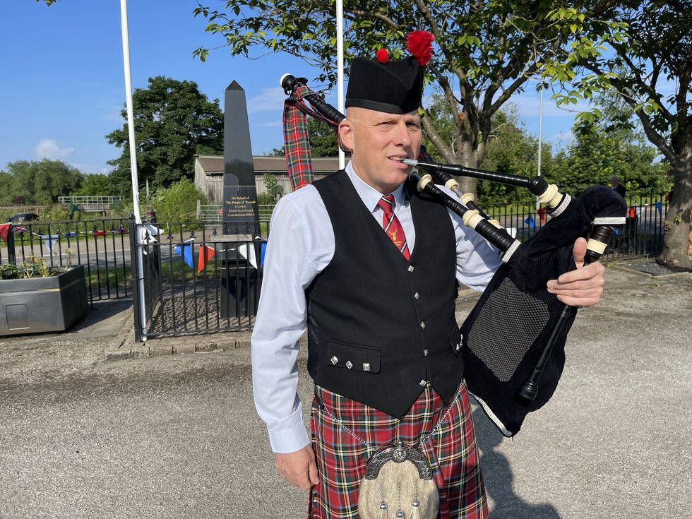 Billy Fernie, 58 from Stapleford in Nottingham, played the Bagpipes to an audience of the Royal British Legion, councillors and school children.