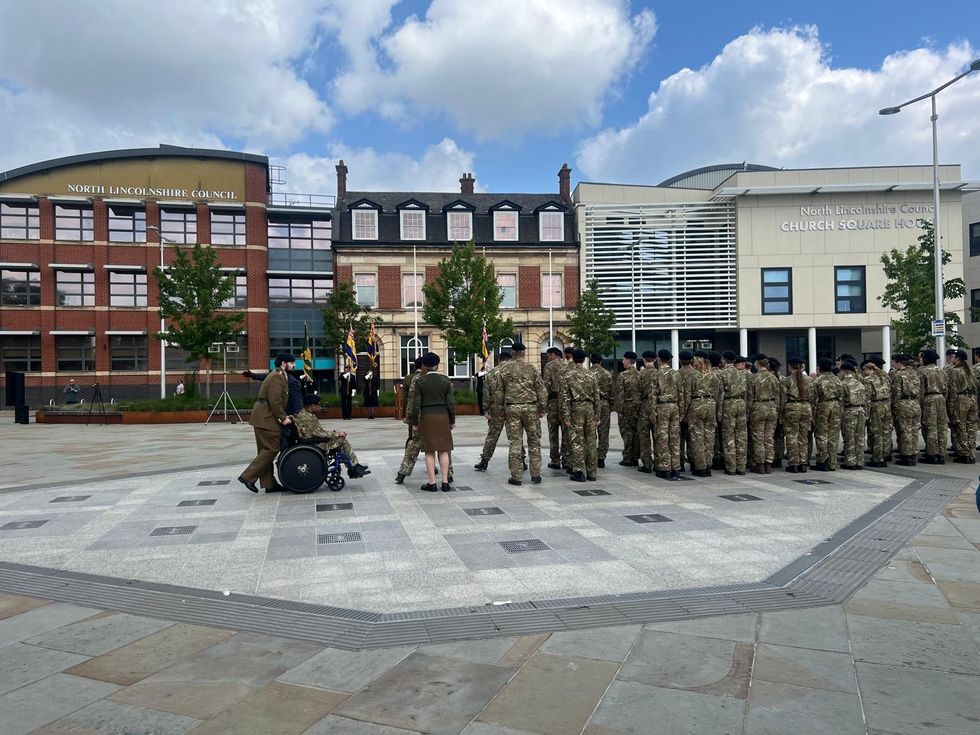 The Mayor of North Lincolnshire, Cllr Janet Longcake, raised the Armed Forces Day flag in Queen Elizabeth Gardens at Church Square, Scunthorpe at 10.30am.