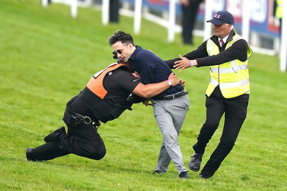 One man burst onto the track just after the race started at 1.30pm before being tackled to the ground.