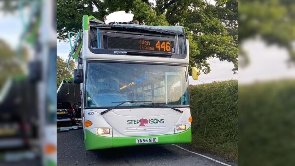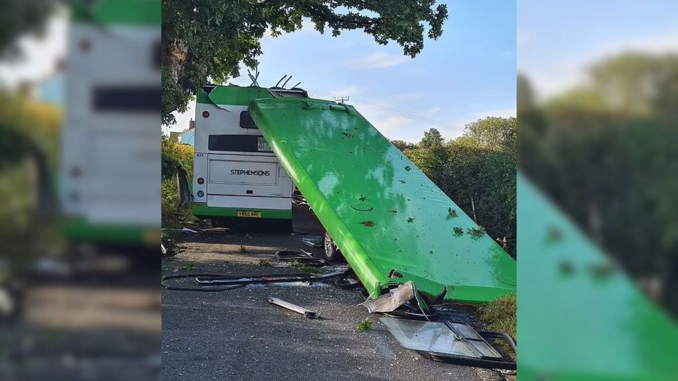Images from the scene show the entire roof torn off the 446 bus to Saffron Walden.