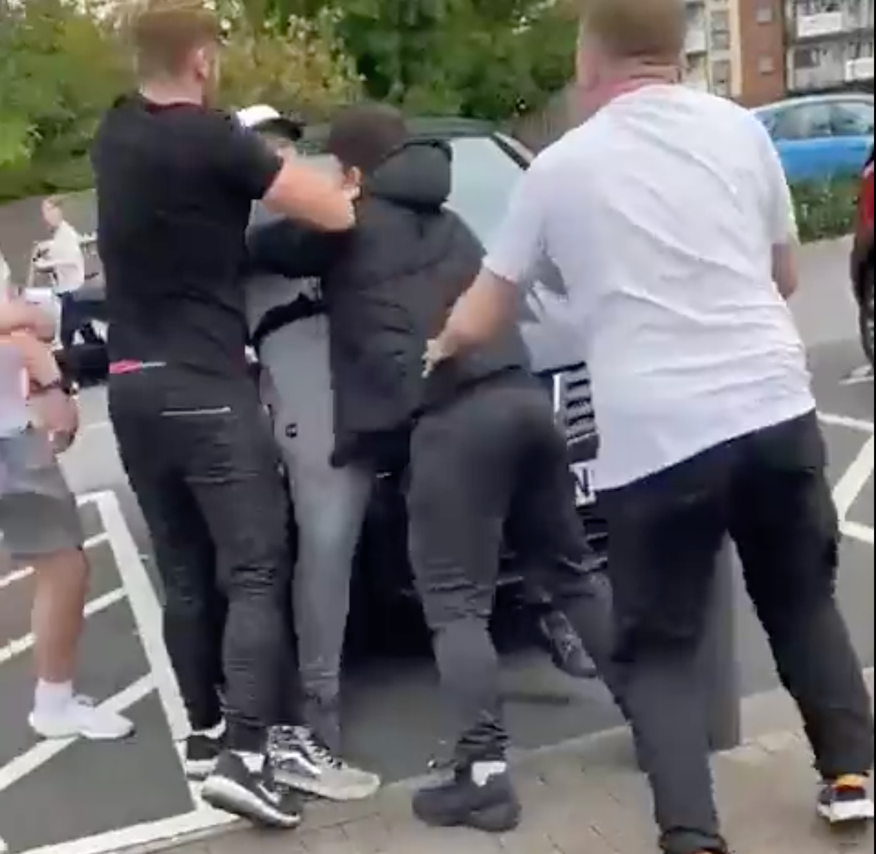 Footage has emerged of a group of men being dragged out of a black BMW and pinned to the floor after a number of suspected "high value" items were taken from Tesco in Waltham Abbey, Essex.