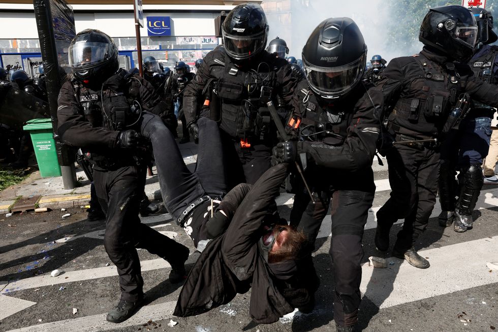 Chaos broke out on the streets of Paris today, as French protesters rioted over Emmanuel Macron's plans to reform the country's state pension.