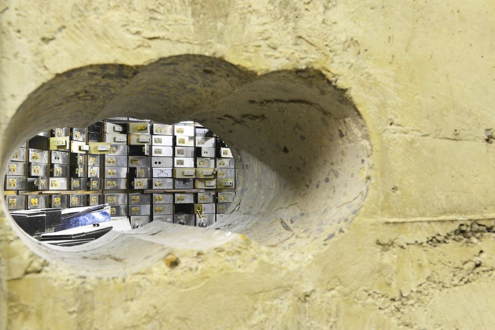 The tunnel created by the burglars which they used to access the vault
