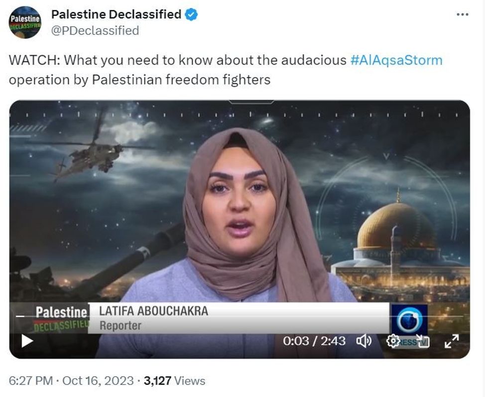 But GB News can reveal that Abouchakra is a reporter for banned Iranian channel Press TV and that she described the brutal Hamas terror attacks on October 7 that massacred 1400 people as a “homecoming … from the resistance factions”.