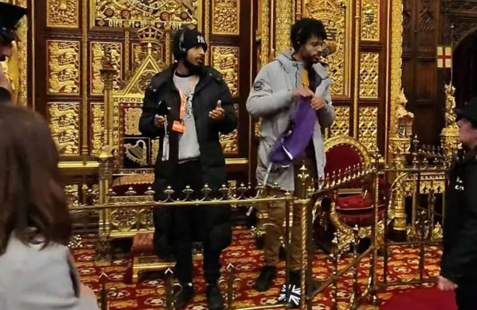 Left-wing protesters storm House of Lords barriers and target King's throne