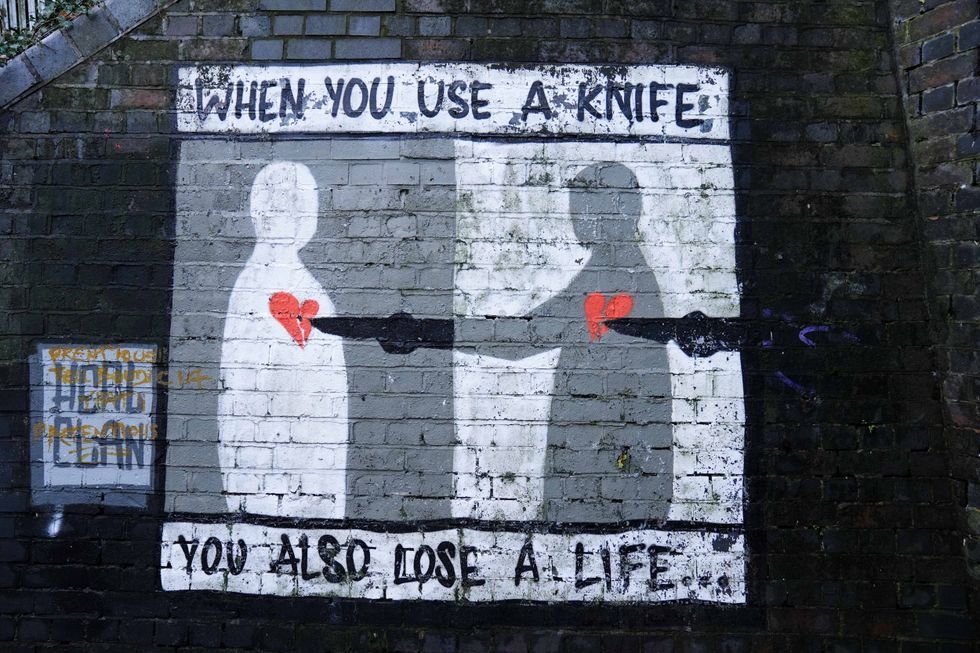Anti-knife crime street art on Scribers Lane in Birmingham,