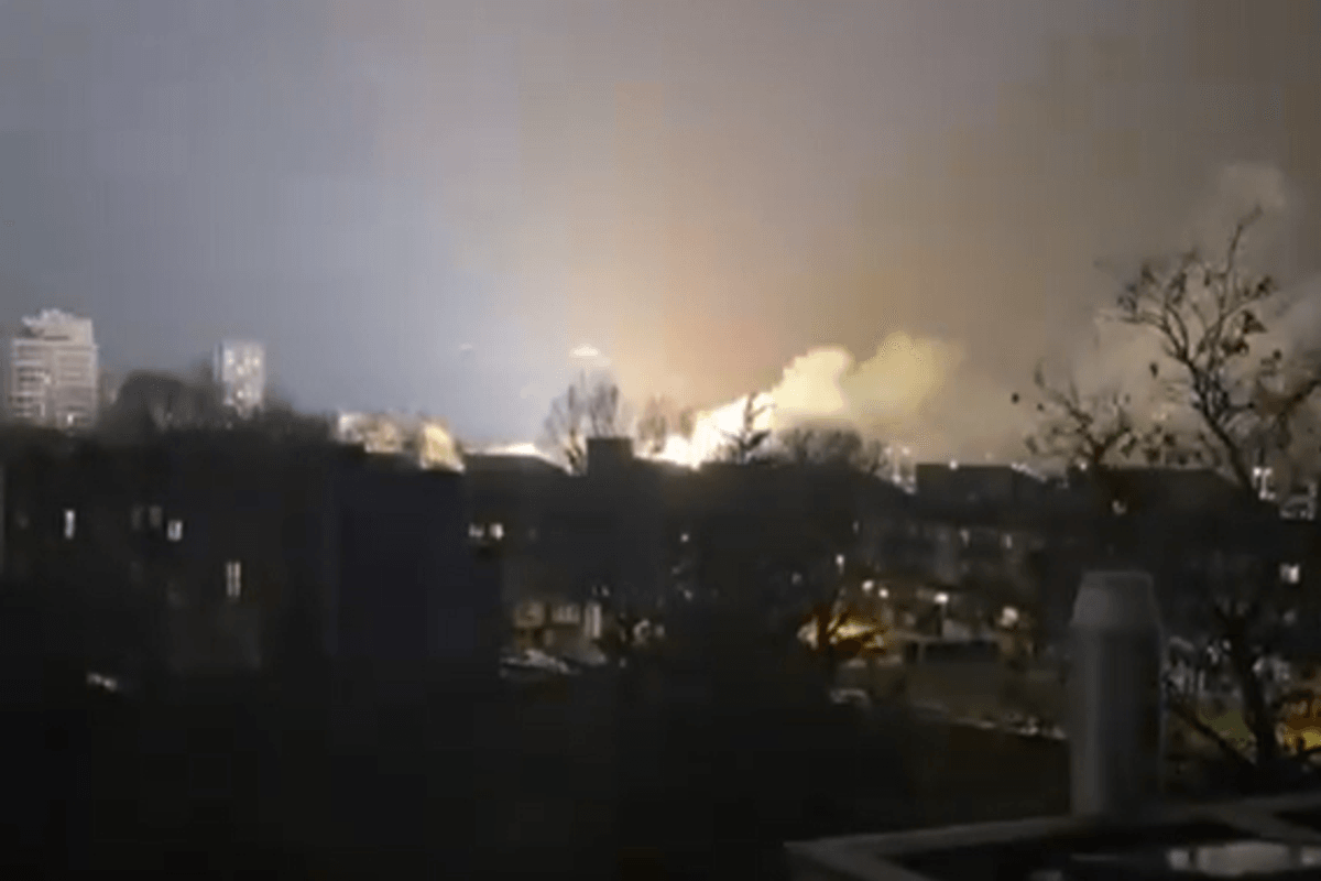 Videos and images of the fierce blaze were shared online as smoke billowed in the capital’s rainy night sky.