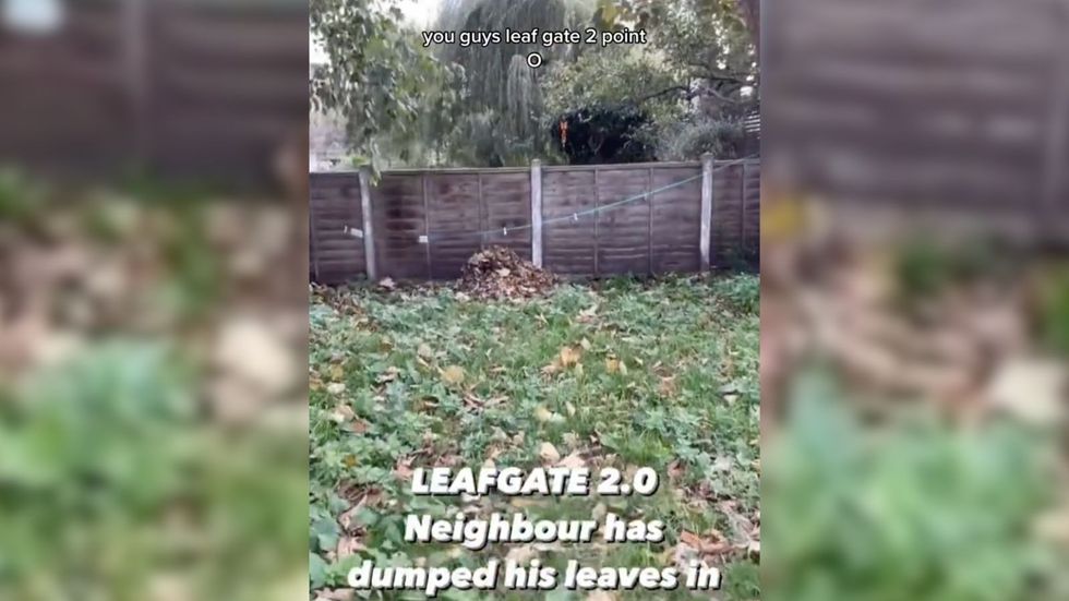 Maddy Carty shared a video of the neighbour feud online which shows the piles of leaves left in her garden.