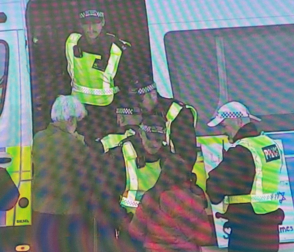 “Officers spotted him carrying a placard with Nazi symbols on it.”