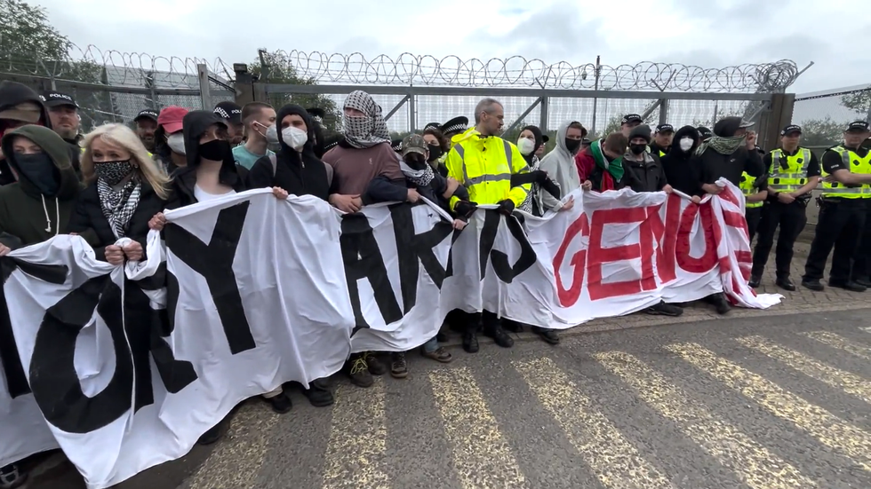 GB News has seen videos of a large-scale police response to protests outside the Thales facility - in the footage, officers could be seen swarming to a crowd of activists outside the factory's front gates and tussling with protesters who had entered what appears to be a security checkpoint.