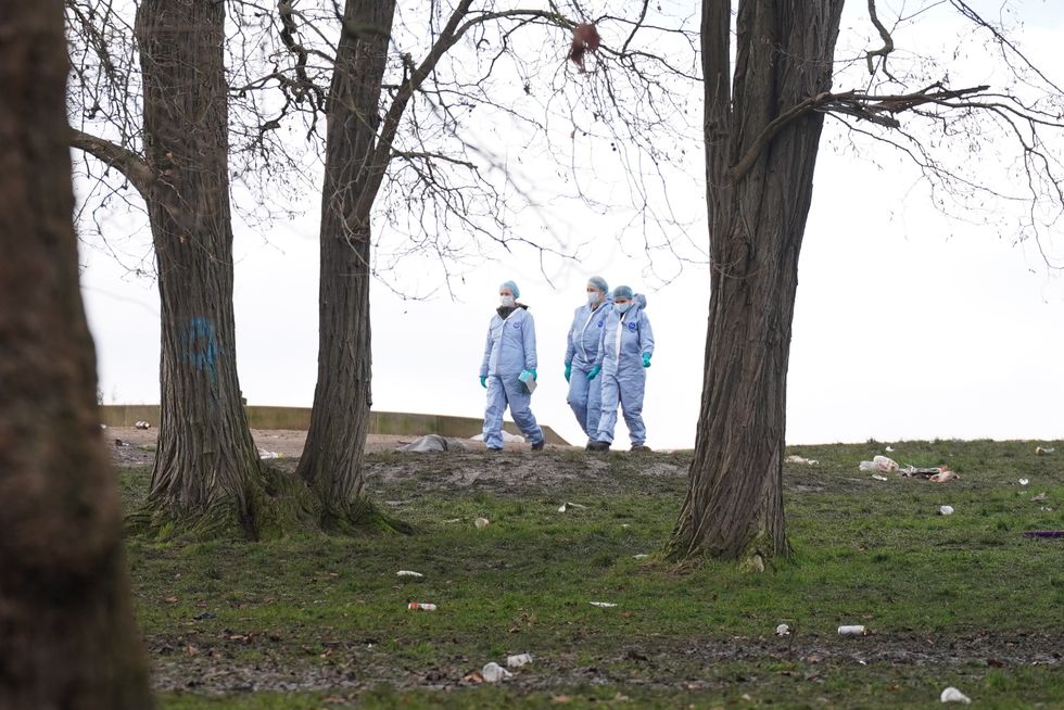 A cordon remains in the area as police officers stand guard at every entrance to the park.
