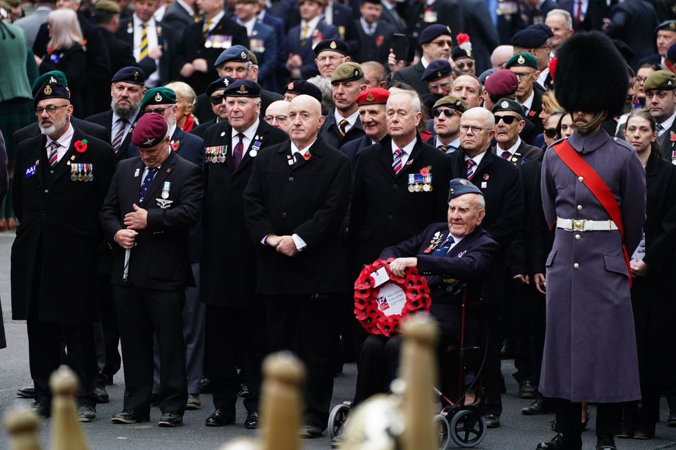 Crowds have lined the streets of London this morning to witness the powerful display of remembrance as thousands of veterans stand in Whitehall for the Royal British Legion’s march past the Cenotaph | PAStanding close to the Cenotaph were an unprecedented eight former prime ministers: Sir John Major, Sir Tony Blair, Gordon Brown, Lord Cameron, Baroness May, Boris Johnson, Liz Truss and Rishi Sunak.