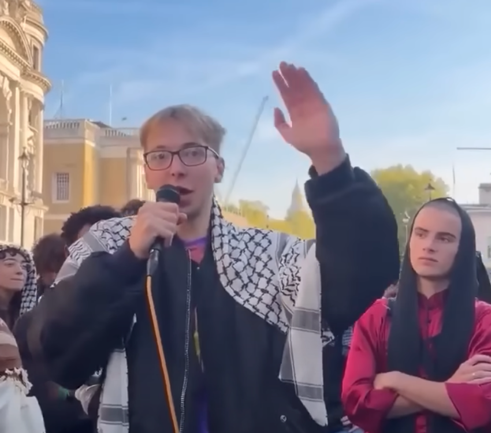 Samuel Williams, a philosophy, politics and economics student at Balliol College, was filmed leading the chant to a crowd of people during a Palestine Coalition protest in Westminster on Saturday, October 11.