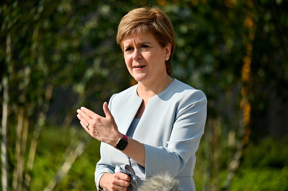 Scottish First Minister Nicola Sturgeon visits the NHS Golden Jubilee in Clydebank, Scotland, Britain August 25, 2021. Jeff J Mitchell/Pool via REUTERS | POOL