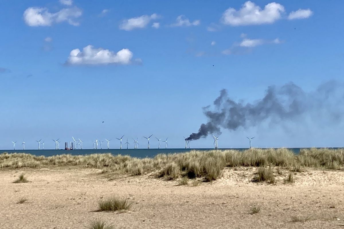 Huge plume of smoke engulfs sky after wind farm catches fire off UK coast