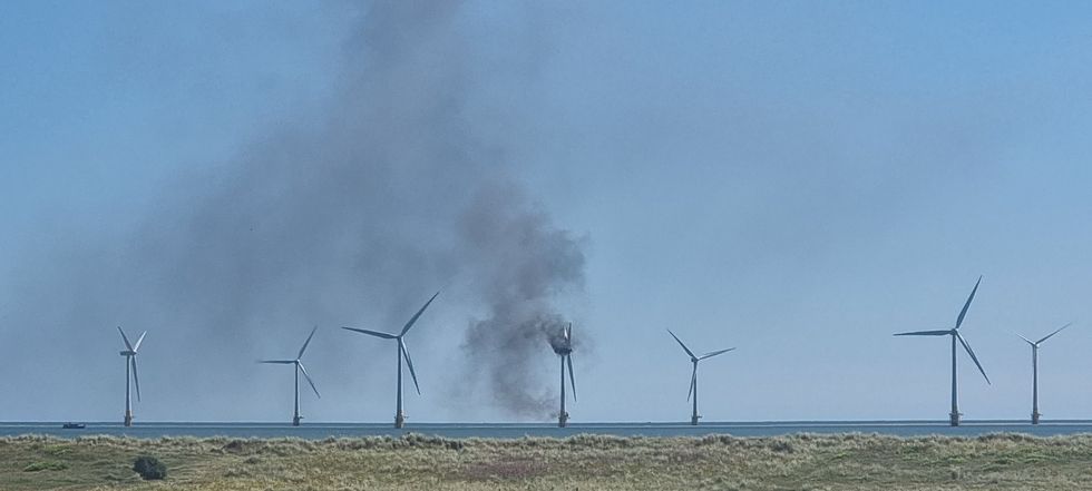 The fire was reported to HM Coastguard at around 10.50am and emergency services were swiftly dispatched to the wind farm, located 1.5 miles (2.4km) off the coast of Great Yarmouth.