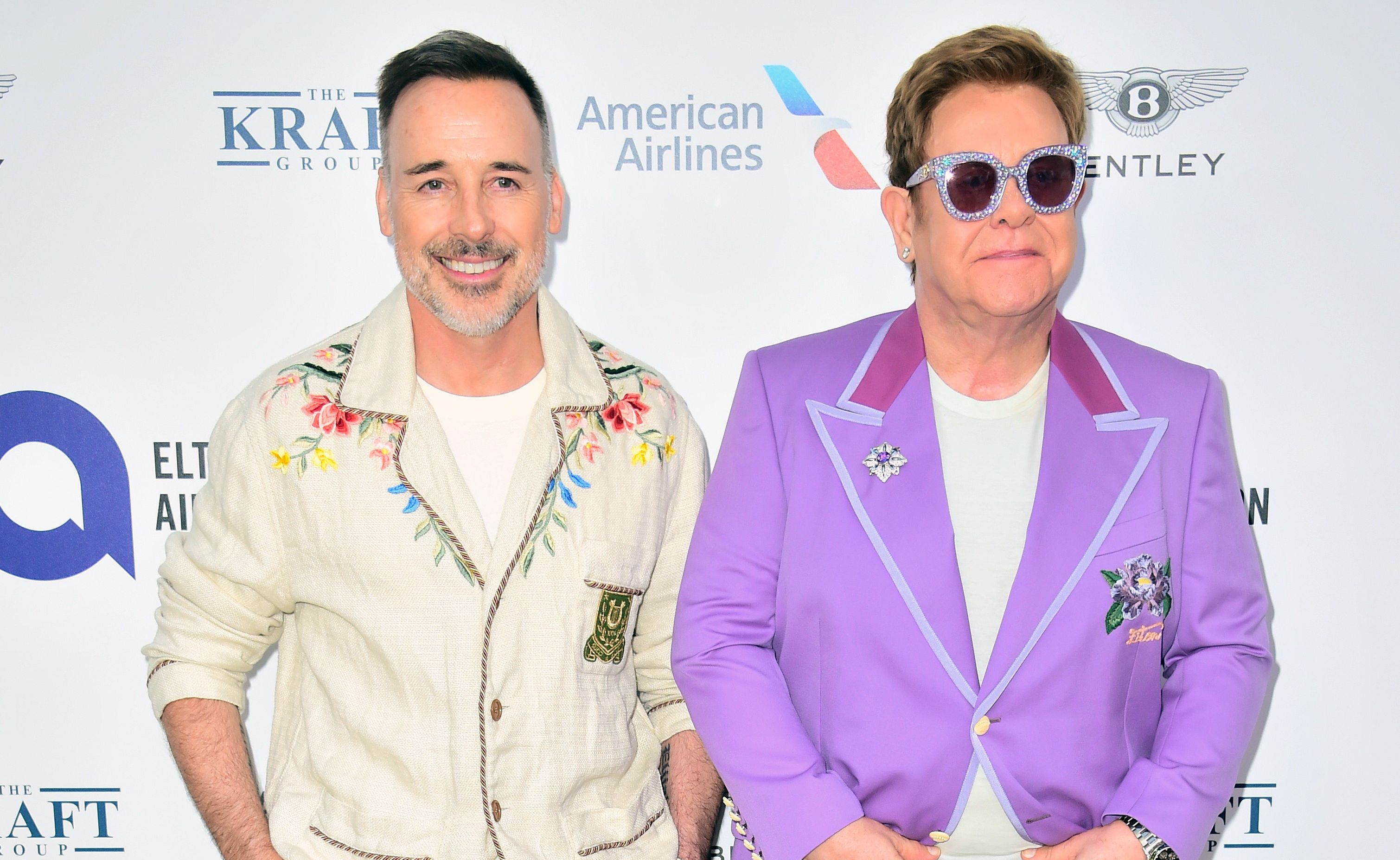 Sir Elton, 76, appeared wearing a black jacket and white shirt - the same choice as his husband.