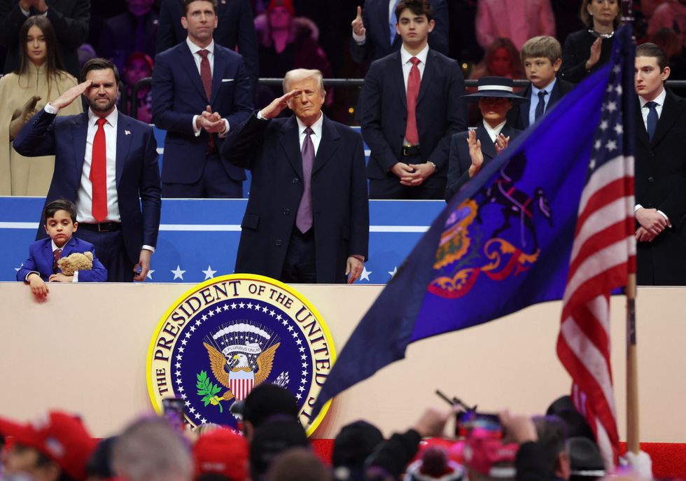 He has taken to the stage at the Capitol One Arena alongside First Lady Melania Trump and Vice President JD Vance to watch the presidential parade before he is set to speak.