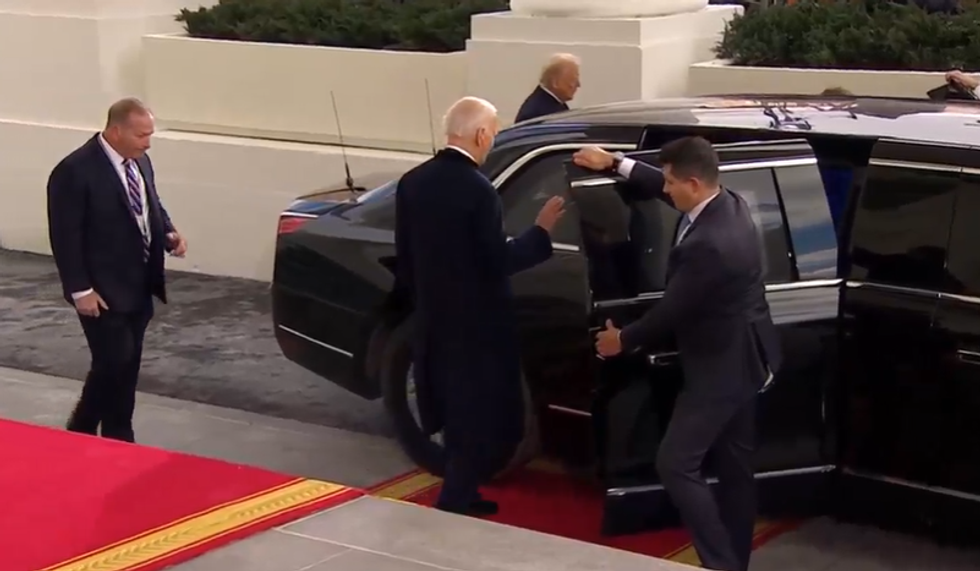 The Trumps and Bidens have finished having tea together, and Trump is now on his way to the Capitol for the swearing in ceremony.
